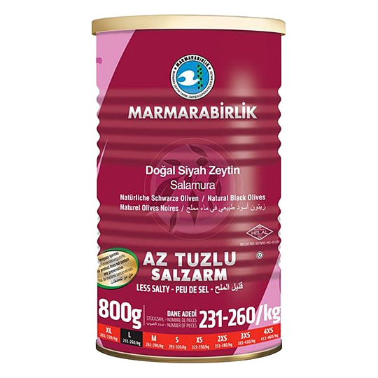 MARMARABIRLIK Olives Noires Peu Salées L 800g